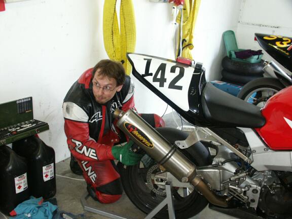 Ich war dann auch ganz zufrieden, obwohl Hectoro auch hier schneller war als ich, aber damit konnte ich noch leben. Womit ich nicht mehr zufrieden war, war der Grip am Hinterreifen und so musste ich in meiner Not selbst Hand anlegen, um den Reifen zu wechseln, leider Gottes konnte ich trotz versuchter Geheimhaltung ein Fotodokument nicht verhindern ;-))
